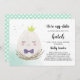 Para a mãe ser de um pouco de churrasco, escolha este convite para chás de fraldas da páscoa moderna. Decorou um com uma adorável ilustração sorridente de ovo sentado num ninho com uma coroa sobre a cabeça e uma gravata arco roxa. O convite contém as frases "Somos ovoestáticos", "Um pequeno está prestes a eclodir". Personalize com os detalhes do seu chá de fraldas abaixo. A parte traseira desses convites apresenta um plano de fundo de bolinhas branca e menta correspondente. Excelente para um chá de fraldas.