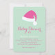 Um roteiro de fita rico e um chapéu cor-de-rosa brilhante sotaque de Papai Noel este convite de chá de fraldas verde da casa, fazer perfeito para o inverno, Natal ou chá de férias.