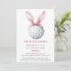 Celebrar a futura mãe com este charmoso convite para Chás de fraldas de Páscoa! Apresentando uma bola de golfe com orelhas de coelho em aquarela, este adorável design dá o tom perfeito para um dia cheio de diversão no verde. Aproveite o golfe, os risos e as doces surpresas, enquanto damos as boas vindas ao coelhinho no caminho!