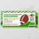 Venha chutar um pouco de diversão! Prontos para festa! Celebre o seu Chá de fraldas temático Esporte com o nosso Convite de festas de futebol. Este super Chá de fraldas de tigela apresenta uma bola de rúgbi moderna em um modelo de ingresso de estádio de super tigela. Para o seu pequeno aniversário de quarterback, envie este convite de chuveiro americano. Perfeito para a festa do Chá de fraldas de rugby, super festa noturna de tigela, convites para ingressos de futebol.