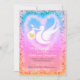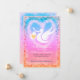 Uma Stork, com sabor, em voo com um feixe de alegria bebê, é complementada por nuvens em forma de coração contra um sopro pastel texturizado, céu azul de rosa. Tudo bordado por folhas multicoloridas neste elegante design totalmente personalizável. Preencha com ilustração correspondente na parte traseira do convite.