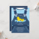 Convite para Chás de fraldas Ducky com o par mais bonito de macacões para bebês com um pato-mãe e patos tripletos para bebês. O chá de fraldas de Meninos Único convida para um chá de fraldas de tema de pato para meninos tripletos.