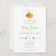 Celebre a chegada do seu pequeno com este novo e moderno convite de chá de fraldas 'Pequena Cutie'. O design apresenta um fundo branco nítido, permitindo que o brilhante pop de laranja fique no palco central. Um pequeno e simples gráfico laranja — que lembra uma fatia de citros lúdica — adiciona um toque alegre sem esmagar o design.