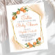 Este convite para chás de fraldas temático dos citros apresenta um quadro geométrico dourado adornado com laranjas aquáticas. O texto personalizável está no moderno roteiro laranja de escrita manual e sans negras serif. Personalize-o com o nome da futura mãe e os detalhes do chá. A parte traseira da placa é uma forma pastel de laranja que corresponde aos realces de aquarela na parte frontal. Ideal para um chá de fraldas de verão!