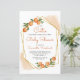 Este convite para chás de fraldas temático dos citros apresenta um quadro geométrico dourado adornado com laranjas aquáticas. O texto personalizável está no moderno roteiro laranja de escrita manual e sans negras serif. Personalize-o com o nome da futura mãe e os detalhes do chá. A parte traseira da placa é uma forma pastel de laranja que corresponde aos realces de aquarela na parte frontal. Ideal para um chá de fraldas de verão!