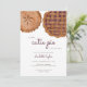 Uma torta bonita está a caminho 🥧 planejar um chá de fraldas de torta? Nossos pequenos convites para o chá de bebê de torta pequena e engraçada são a maneira perfeita de celebrar o novo bebê no caminho com um chá de fraldas de Ação de Graças. Perfeito para um chá de fraldas para um menino ou menina em novembro, estes convites para chás de fraldas de torta de morango são a escolha perfeita. O chá de fraldas da torta de vinho, neutro em gêneros, da ROANNA, convida a design tem um fundo branco com uma torta de morango e uma torta de maçã, em conjunto com 'uma pequena torta de cuta está a caminho', escrito em uma letra de escrita bonita e uma letra serif em dois tons de marrom, e os outros detalhes importantes do chá em uma fonte de serifa castanha escura para adicionar interesse visual ao seu convite para chá de fraldas de torta. Personalize este convite de chá de fraldas de torta moderno, adicionando nomes, data, hora, local e outros detalhes. Perfeito para um chá de fraldas de novembro inspirado na sobremesa de Ação de Graças.