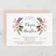 O convite para chás de fraldas chic apresenta o nome da mãe para ser em um roteiro elegante de caligrafia, enquadrado por pêssego e flores cor-de-rosa, botões e verde. Personalize com os detalhes do seu chá de fraldas abaixo.