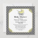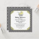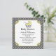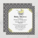 Convite para chás de fraldas elegante feito em cinzas e bolinhas brancas, com gráficos doces de um bebê pram amarelo, no topo de uma área de texto quadrada amarela. Personalize o texto da cinza escura, para o seu chá de fraldas. Os produtos correspondentes estão disponíveis.