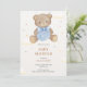 Aprecie seus convidados com este adorável convite para chá de fraldas de ursinho de pelúcia, com um urso marrom de aquarela segurando um presente azul pastel. Cercado por nuvens flutuantes e estrelas coloridas, esta design traz um charme confortável e lúdico - perfeito para celebrar a chegada iminente de um menino ou para qualquer floresta ou chá de fraldas com tema de pelúcia. Recursos: Ideal para chás de bebês ou eventos com temática animal 🎁 Uma forma fofinho e charmosa de convidar seus entes queridos para esta ocasião especial!