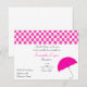 Este convite para chás giro apresenta uma silhueta de um guarda-chuva rosa na parte inferior. Uma faixa marcada rosa e branca fica no topo. Todo o texto é personalizável para atender às suas necessidades de chá de aspersão.
