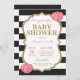 Convite ao Chá de fraldas de Pumpkin Preto e Dourado. Dourada Glitter.Convite De Chá de fraldas. Black and White Stripes.