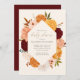 Celebre um pouco a caminho com este elegante convite para chás de fraldas florais, com flores aquáticas em tons ricos de laranja, amarelo, rosa e burgundy.