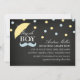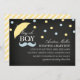 O convite do garoto adorável apresenta um design de guarda-chuva e bigode. Este convite está disponível em mais cores na Loja de Lobos! Para obter mais opções, pressione o botão de personalização laranja.