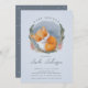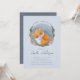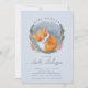 Design de chá de fraldas de bebê de inverno doce com raposa bebê dormindo com ramificações de pínus e bagas colocadas sobre um fundo azul claro de neve. Visite o nosso compro para ver toda a nossa coleção de design de animais de floresta de inverno.