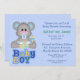 Um chá de fraldas moderno de bebê ratinho com um adorável urso com um pacificador, uma garrafa de bebê e blocos de bebê com abc. Pequenos fundos pontilhados Adicione os detalhes da sua festa.