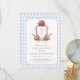 Bata-o fora do parque com este convite de chá de fraldas de beisebol. Apresentando uma crista inspirada na safra, morcegos cruzados e sotaques vermelhos ousados, esta design é perfeita para uma celebração esportiva e eterno.