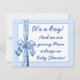 Uma borda azul doce com uma fita e um arco ilustrados da xadrez (o arco é impresso na placa). Este cartão tem um doce retrato e será perfeito para convidar convidados para o seu próximo chá de fraldas.