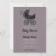 Muito assustador, este bebê buggy vintage está decorado com flores, vinhas e para um belo toque alguns espinhos! A tipografia de estilo gótico e as púrpuras de humor acrescentam à sensação escura deste convite a chás de fraldas. Veja também os nossos pontos de coordenação.