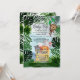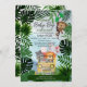 Celebre a chegada do seu pequeno pacote de alegria com este convite de chá de fraldas temático de safari. A design apresenta um grupo de adoráveis animais da selva e folhas tropicais rústicas de verde.