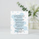 Chá de fraldas doce feito em azul e branco simples, com uma silhueta azul clara de um ursinho de pelúcia, em branco com fundo bolinhas azul. O verso do convite é feito em azul claro sólido. Personalize os campos de texto preto para atender às suas necessidades de evento bebê.