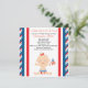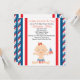 Firecrackers e fogos de artifício! Há um bebê a caminho! Comece a comemorar com este adorável convite para chás de fraldas. Tem estrelas e riscas vermelhas, brancas e azuis em cada lado com o centro branco. No centro de baixo está uma menina bonita em uma fralda vermelha, branca e azul e vestindo um arco vermelho em seu cabelo e segurando a bandeira americana em sua mão. Personalize com as informações de seu partido. Veja os outros designs e cores que oferecemos. ©JW Ilustrations