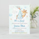 Convite de chá de fraldas de vitrine chá de fraldas de girafa de bebê convite Gênero revela convite de festas. Convide seus amigos com este convite de chá de fraldas colorido de aquarela apresentando uma cegonha, girafa bebê e algumas nuvens ao redor. Personalize todos os textos neste modelo fácil de usar para torná-lo exclusivo!