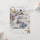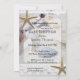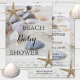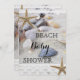 Um adorável convite romântico para chás de fraldas de praia com areia e conchas e rendas com peixes-starda.