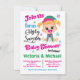 Convite De Chá de fraldas De Doce Feio. Possui uma menina vestida com seu suéter de Natal, fralda e chapéu de elfo. Fontes coloridas e flocos de neve.