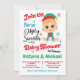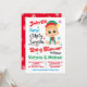 Convite De Chá de fraldas De Doce Feio. Possui um bebê vestido com seu suéter de Natal, fralda e chapéu de elfo. Fontes coloridas e flocos de neve.