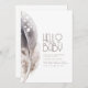 Se você ama um estilo simples de boho, este convite é certo para você. O convite apresenta um design elegante, com um fundo branco e suave. No centro, os detalhes da festa são lindamente escritos num texto marrom exuando um ar de sofisticação. A pena de aquarela fica no lado esquerdo. Convide convidados para a sua festa de chá de fraldas em estilo. A cor e o texto em segundo plano são editáveis.