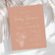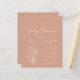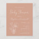 Este chá de fraldas moderno apresenta um texto branco sobre um fundo de terracota. Um design floral de arte de linha aparece no canto inferior esquerdo. Adicione o nome da futura mãe no script de escrita manual branco de na moda e os detalhes na fonte sans serif.