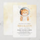 Celebre seu filhote no caminho com este adorável convite de chá de fraldas com tema espacial, com um tigre sorridente em um capacete espacial. As estrelas de aquarela suave, os tons cor de laranja quente e dourados, e a tipografia moderna dão a este convite um charme caprichoso, neutro em termos de gênero. Perfeito para um chá de fraldas espacial com uma reviravolta divertida. Personalize com os detalhes do seu partido para torná-lo exclusivamente seu. Uma escolha encantadora para os pais acolherem seu futuro explorador!