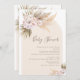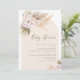 Um convite minimalista ao chá de fraldas floral boêmio moderno, em tons quentes, com um arco e arranjos florais com grama pampas, pomares e rosas cor-de-rosa empoeiradas. Ideal para alguém que procura um convite de chá de fraldas de arco inspirado na boemia.