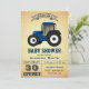 Surpreenda seus hóspedes com este convite legal de chá de fraldas com um belo trator de fazenda azul com tipografia moderna contra um pergaminho vintage. Basta adicionar os detalhes do seu evento neste modelo fácil de usar para torná-lo um convite de tipo único. Sacudir a placa para revelar uma textura rústica de madeira de celeiro na parte traseira da placa.