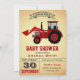 Surpreenda seus hóspedes com este convite legal de chá de fraldas com um belo trator de fazenda vermelha com tipografia moderna contra um pergaminho vintage. Basta adicionar os detalhes do seu evento neste modelo fácil de usar para torná-lo um convite de tipo único. Sacudir a placa para revelar uma textura rústica de madeira de celeiro na parte traseira da placa.