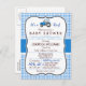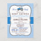 É um menino! Trator de fazenda elegante, o chá de fraldas do tema do país convida para um padrão de gingham azul com visual formal vintage. Excelente para fazendeiro, chás de fraldas temáticos do país. Convite de forma de colchete retrô.