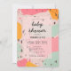Esta tendência e o convite moderno para o chá de fraldas apresenta padrões de pinceladas abstrato de néon cor-de-rosa, laranja, sobre turquesa em fundo rosa-claro. O verso apresenta fundo rosa. Altere as cores de fundo tanto na frente como no verso e personalize-as para suas necessidades. Você pode encontrar produtos correspondentes na minha loja.