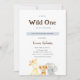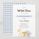 Simples, fofinhos bichos de aquarela Wild One Safari, convite para Chá de fraldas para o garoto.