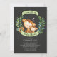 Seja bem-vindo. Convite para o Chá de fraldas de Um Macaco com uma mãe e um macaco bebê com selva verde deixa uma faixa de fita colocada sobre um fundo preto no quadro. Perfeito para um chá de fraldas de meninas, chá de meninos ou chá neutro em gênero.