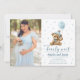 Diga aos seus entes queridos o quanto eles são amados com este ursinho azul segurando um convite para fotos de chá de bebê de balão.
