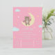 fundo rosa com um filhote de urso. convite para chá de fraldas de cores pastel