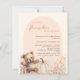 Um elegante Pumpkin está a caminho do convite Chá de fraldas. Um fundo creme, cor bege e um arco colorido de pêssego. Decorado com flores silvestres de cor aquosa em bege, rosa e uma abóbora de cor creme e um ursinho feliz. 1 folha = 1 convite impresso de borda a borda.