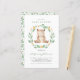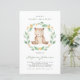 Convide familiares e amigos para o seu evento com o convite de chá de fraldas personalizável. Apresenta um urso de bebê aquarela numa coroa verde com vegetação correspondente e um padrão floral. Personalize este convite de chá de fraldas de urso adicionando os detalhes do evento. Este convite é perfeito para chás de fraldas neutros em termos de gênero.