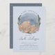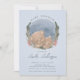 Design de chá de fraldas de bebê de inverno doce, com um urso bebê dormindo com ramificações de pinheiros e bagas colocadas sobre um fundo azul claro de neve. Visite o nosso compro para ver toda a nossa coleção de design de animais de floresta de inverno.