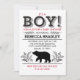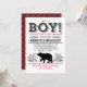 Celebre em estilo com este convite para chá de fraldas lumberjack. Apresenta uma inscrição ousada, um urso entre a folhagem, com um padrão de xadrez de búfalos nas costas. Faz um tema adorável para o seu chá.