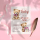 Celebre sua chegada com este adorável convite para Chá de fraldas do Urso de Teddy com dois encantadores ursos de pelúcia - um sentado adoçadamente com uma gravata de arco roxa e o outro segurando uma caixa de presente listrada a rosa. Os tons neutros suaves combinados com ilustrações lúdicas criam uma vibração quente e acolhedora para o seu evento. Projetado com uma tipografia elegante e um layout limpo, este convite é perfeito para chás de meninas, temas neutros em gênero, ou qualquer pessoa que ame filmes clássicos de ursos de pelúcia. Perfeito para: temas clássicos de chá de fraldas Neutrais ou convites para bebês para bebês Teddy ou festas com tema de presente designs minimalistas de tom flexível Personalize-o com os seus detalhes de evento em segundos e uau aos seus hóspedes com o seu doce e eterno charme!