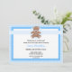 Feita para parecer que estava costurada no papel, este convite para chás de fraldas é giro como um botão, ursinho de pelúcia e tudo mais. Este convite é azul colorido para todos aqueles garotos que esperam mães. Por favor, procurem autocolantes e outros itens para acompanhar este convite.