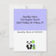 Um ursinho panda bonito com um pacote embrulhado e um balão verde ao lado dele. Pássaros azuis voando, uma borda de azul e uma borda de listras. Personalizar conforme desejado.