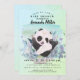 Convite para chá de fraldas bonito com um pequeno panda doce, com aquarela e brilho em fundo quente