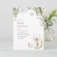 Adorável convite ao chá de fraldas apresenta folhagem de floresta de inverno, mamã de urso polar e filhote com flocos de neve. Personalize com suas informações ou clique em "Clique para personalizar mais" para editar estilos de fonte, tamanho e cores.